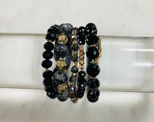 Beaded Bracelet Stack - Black