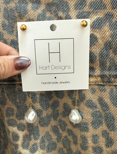 Gold Long Pearl Drop Earring