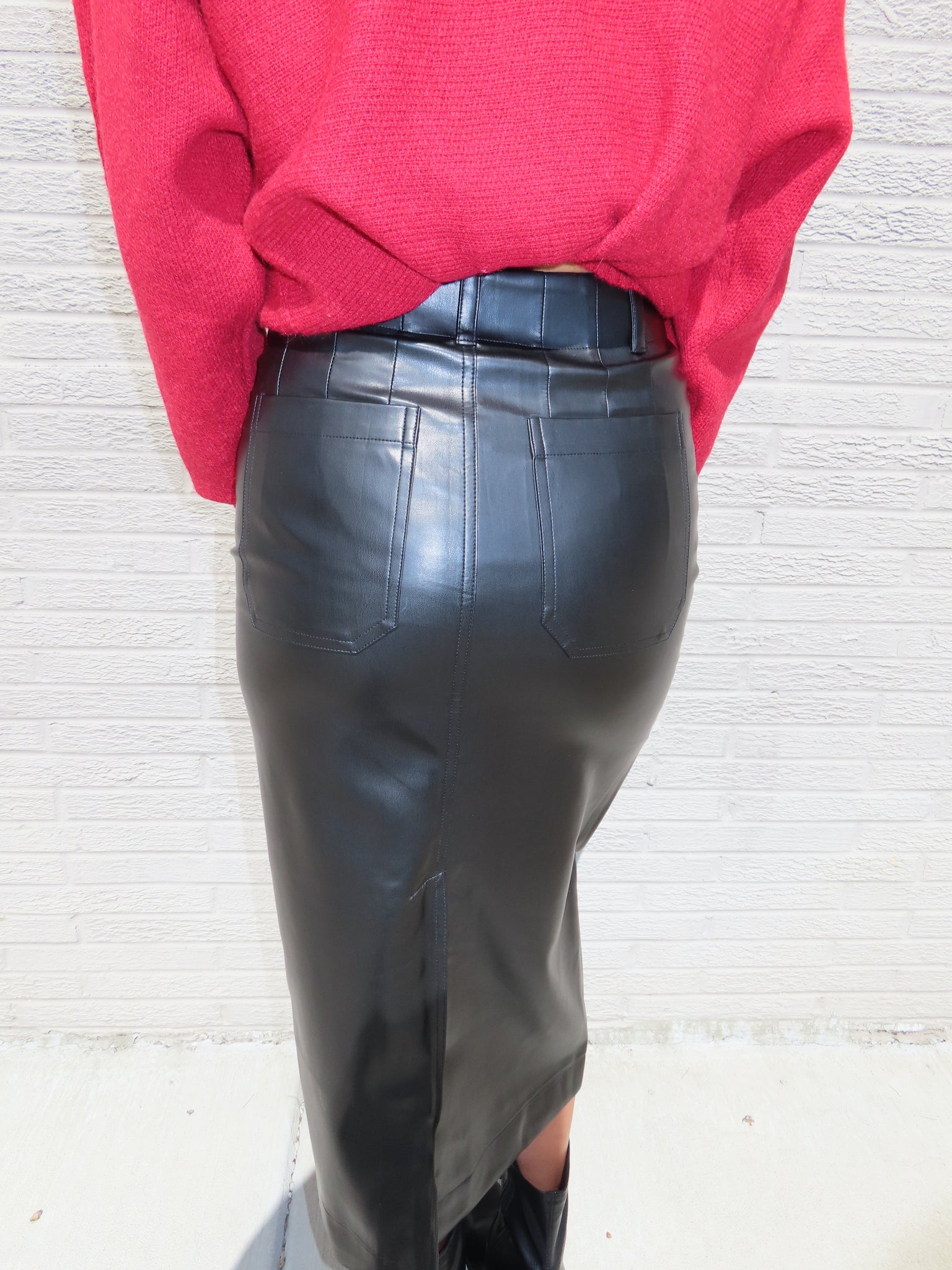 Black Pleather Midi Skirt